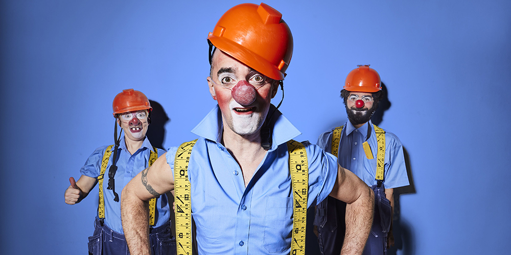 När tre clowner med en byggfirma ger sig ut i Malmös parker – då kan vad som helst hända! Clownerna är övertygade om att de kan bygga precis vad som helst – med stil, fart och en stor dos kreativitet. Med hinkar, plankor och skruvdragare är de redo att resa sitt praktverk på det gröna gräset. Men vad ska de egentligen bygga? Och vem har ritningen?
